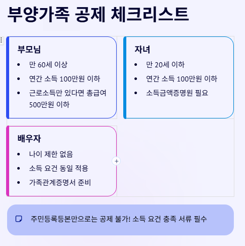 - ✅ 부양가족 중복 공제: 부부가 동시에 공제받으면 오류 발생 가능