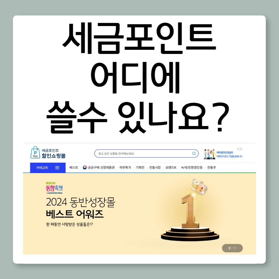 국세청에서는 이 포인트를 활용해 중소기업 제품을 할인된 가격으로 살 수 있는 온라인 쇼핑몰을 운영 중! 🎉