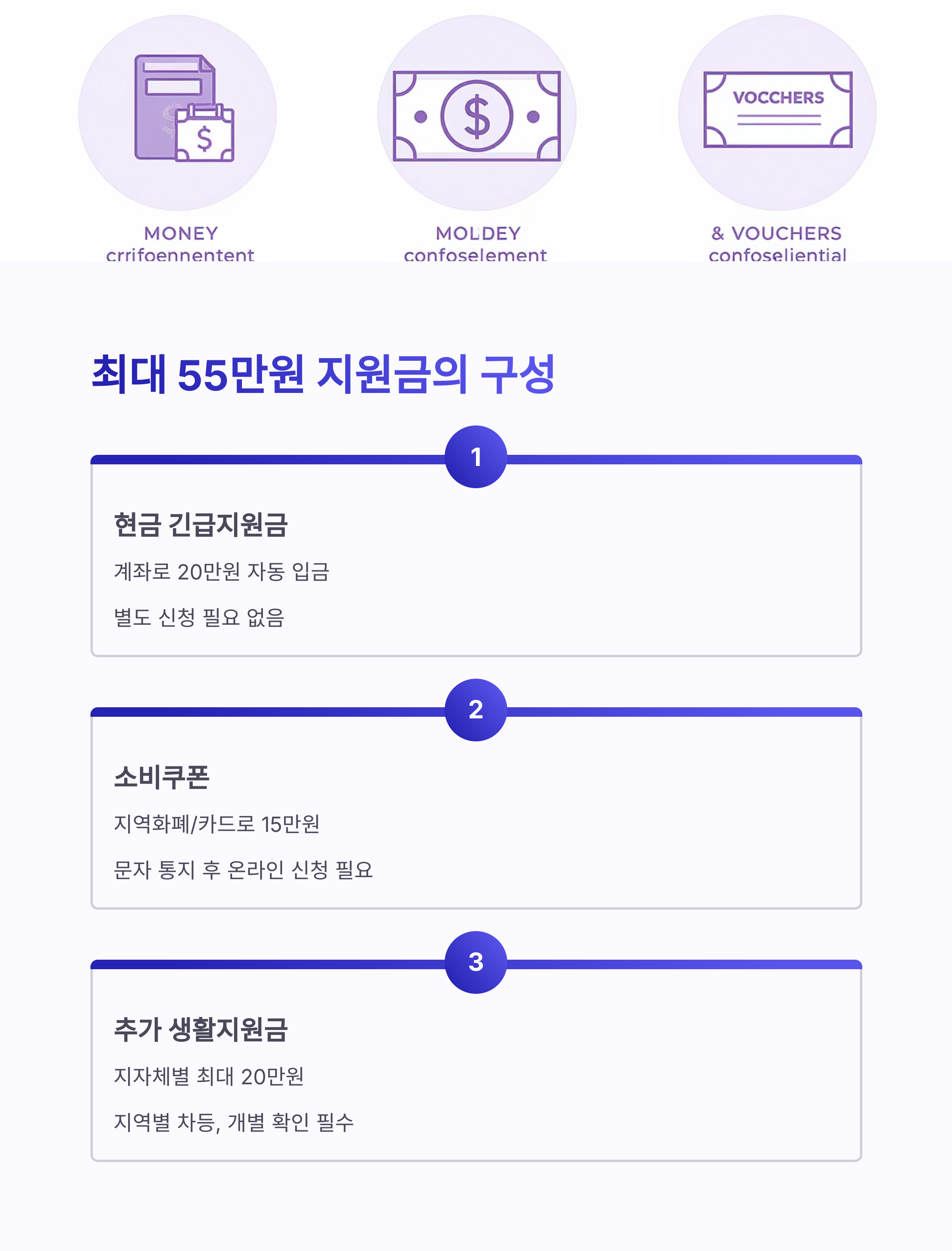 | 소비쿠폰(전통시장 등) | 지역화폐 or 카드 | 15만 원 | 문자 통지 후 온라인 신청 필요 |
