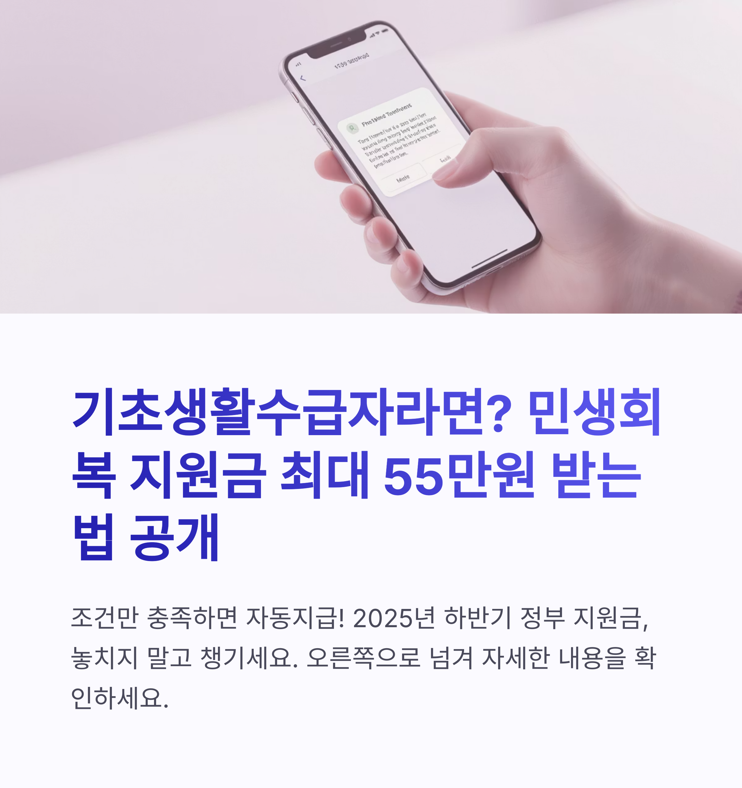 2025년 하반기 정부의 민생회복 대책 중 기초생활수급자와 차상위계층을 위한 직접 지원금 지급이 본격화되고 있습니다. 별도 신청 없이도 받을 수 있는 구조지만, 항목별로 최대 55만 원까지 받을 수 있는 조건과 항목은 정확히 알고 있어야 누락 없이 모두 챙길 수 있습니다. 지금부터 구체적인 지급 구성과 수령 요령을 자세히 안내드립니다.