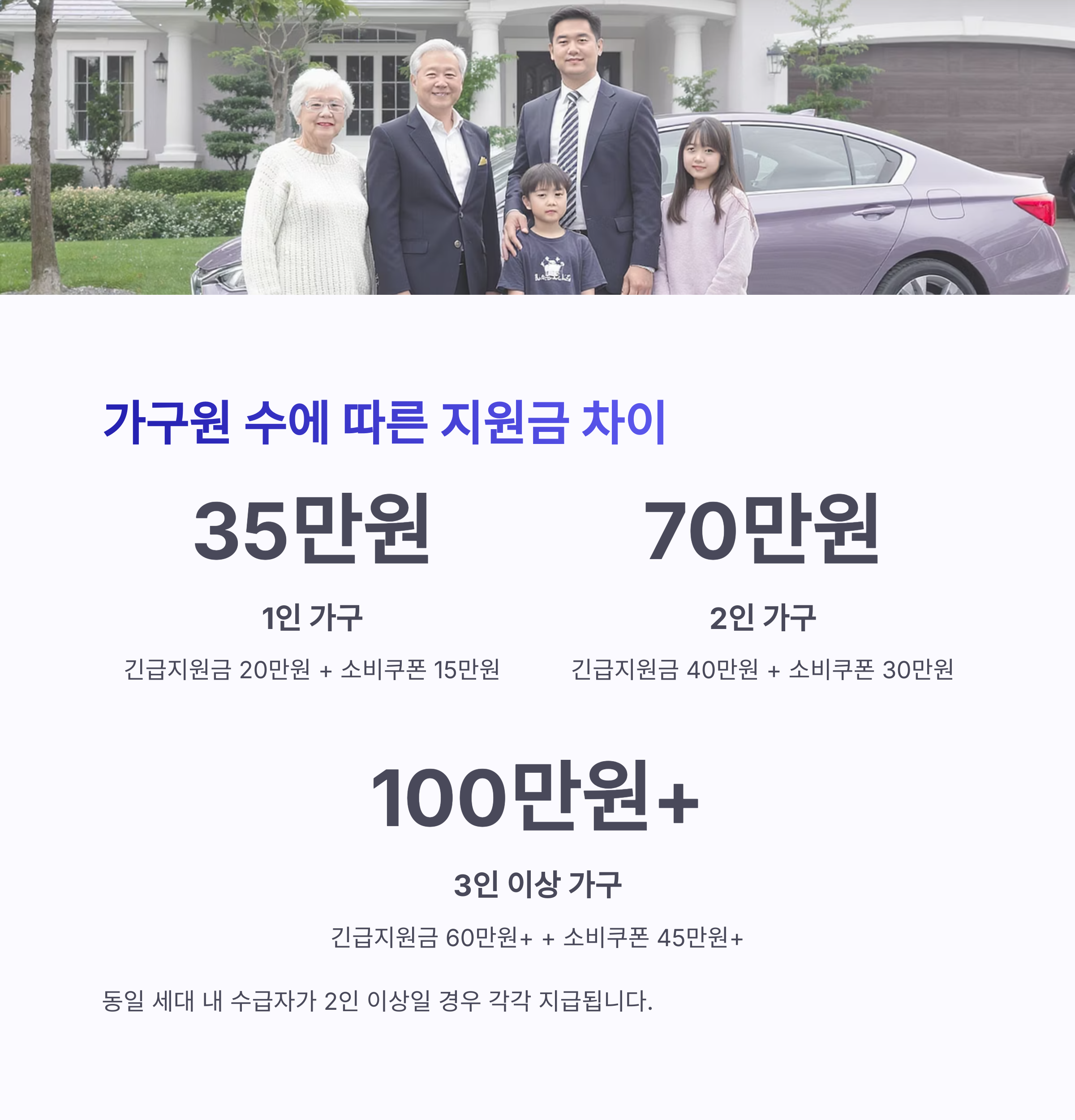 지급금은 1인 기준 금액이며, 동일 세대 내 수급자가