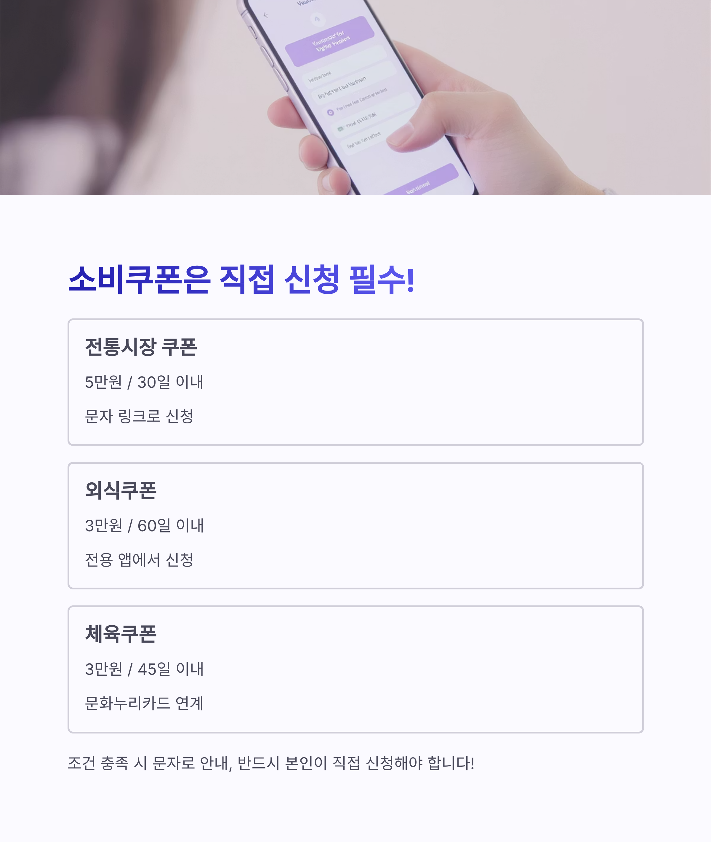 전통시장, 외식, 체육, 문화 관련 쿠폰은 조건 충족 시 문자로