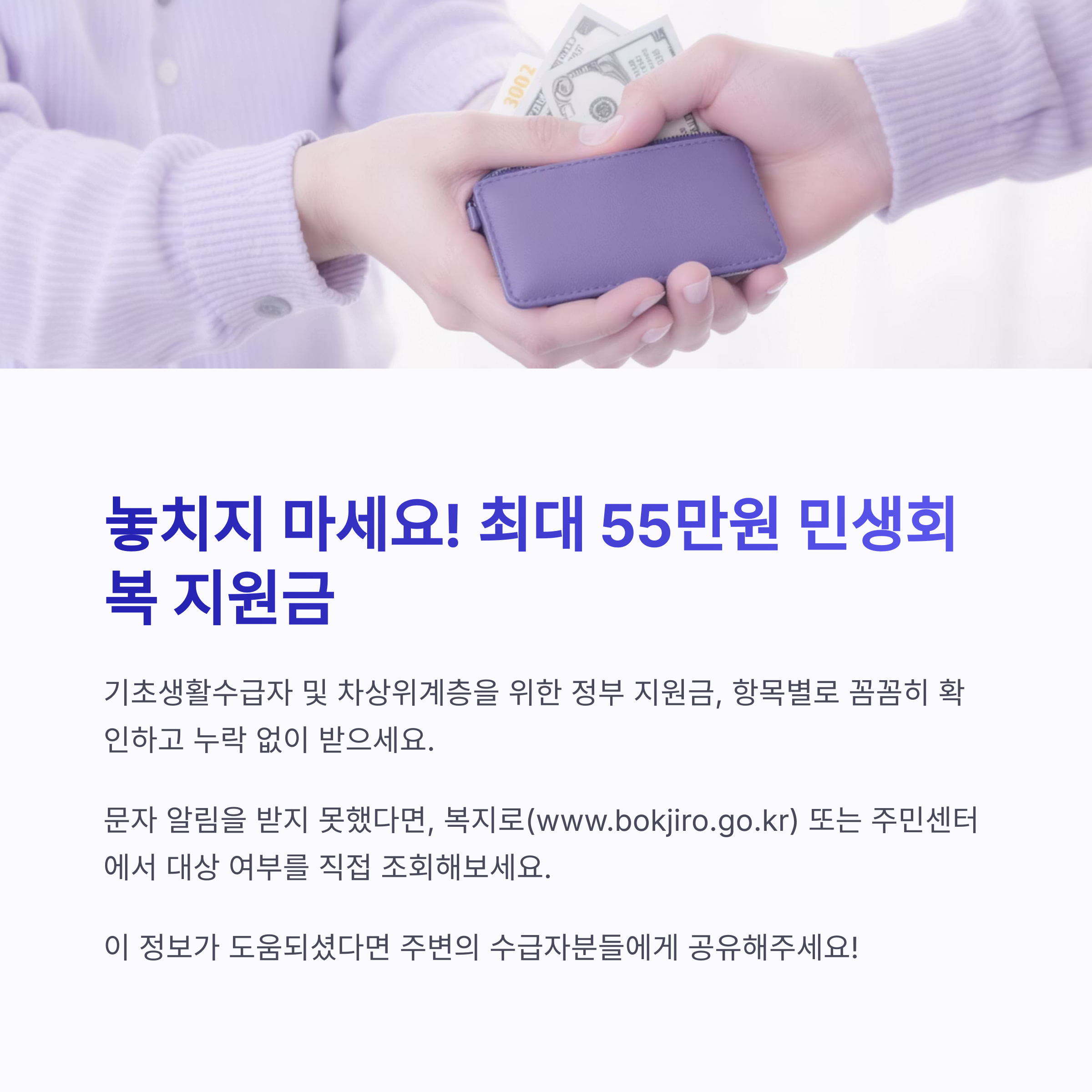 기초생활수급자라면? 민생회복 지원금 최대 55만원 받는 법 공개