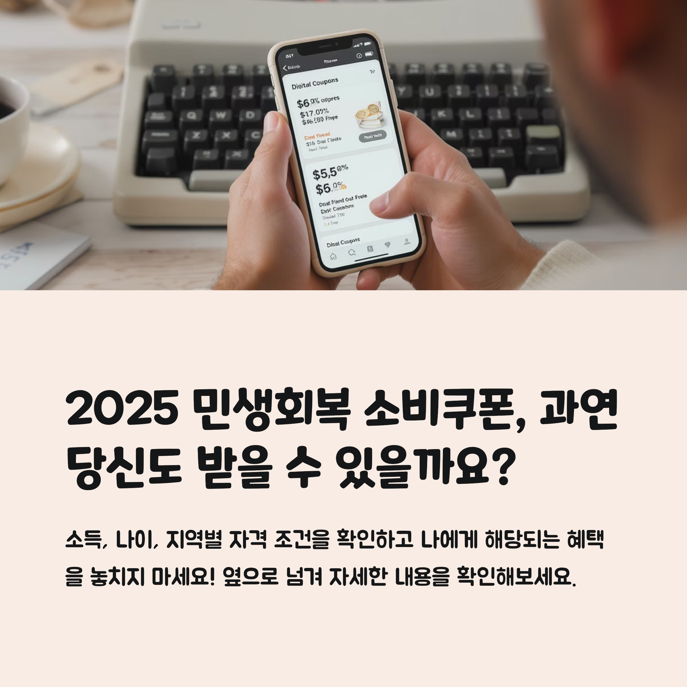 2025년 하반기 민생회복 소비쿠폰이 다시 시행되며 "과연 나는 받을 수 있을까?"라는 궁금증이 커지고 있습니다. 이번 소비쿠폰은 전국민을 대상으로 하는 경우도 있지만, 일부는 연령, 지역, 소득에 따라 제한되기 때문에 자신이 해당되는 조건을 정확히 알고 신청하는 것이 중요합니다. 본문에서는 쿠폰별로 적용되는 대상자 조건을 한눈에 정리해드립니다.