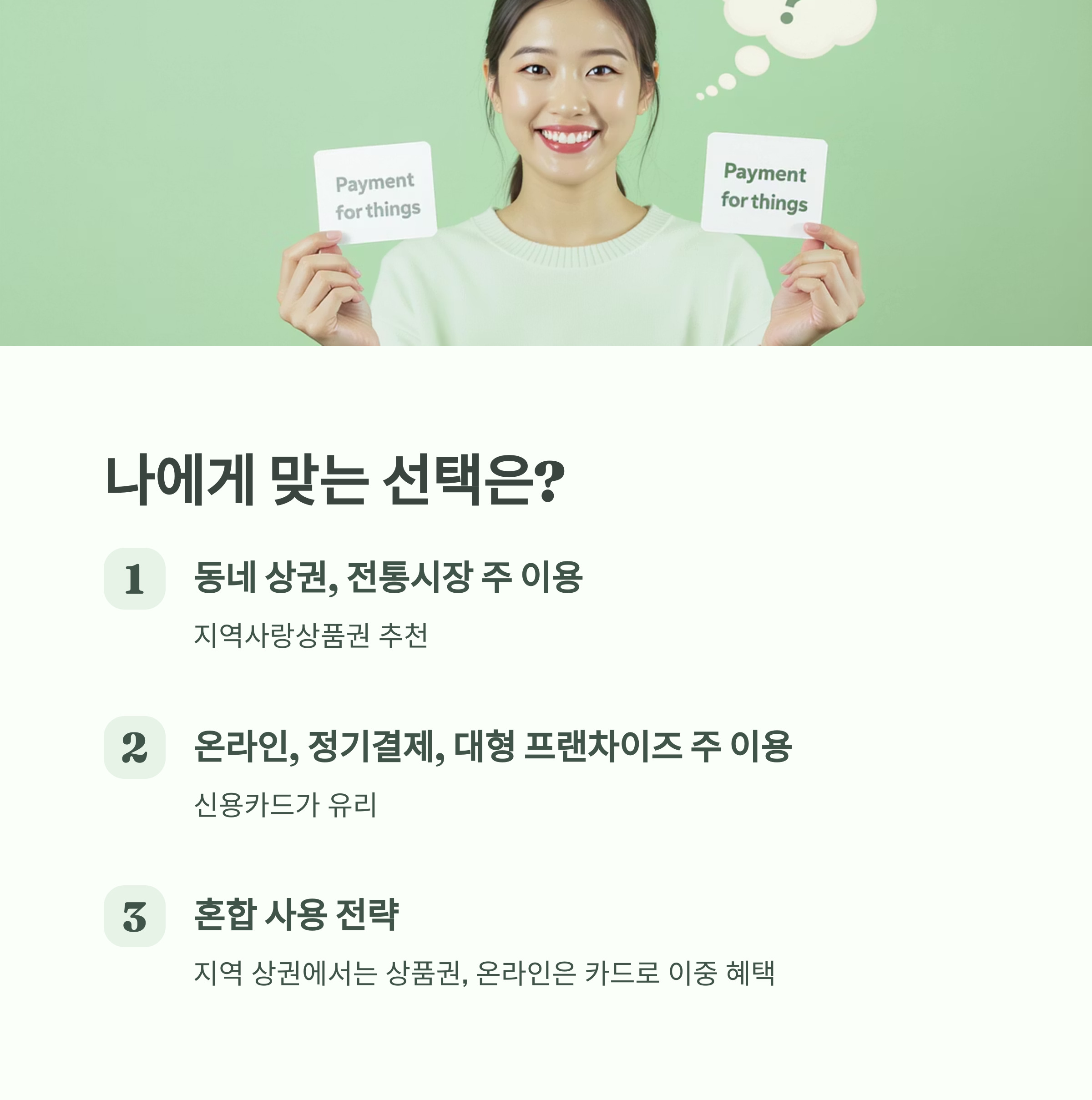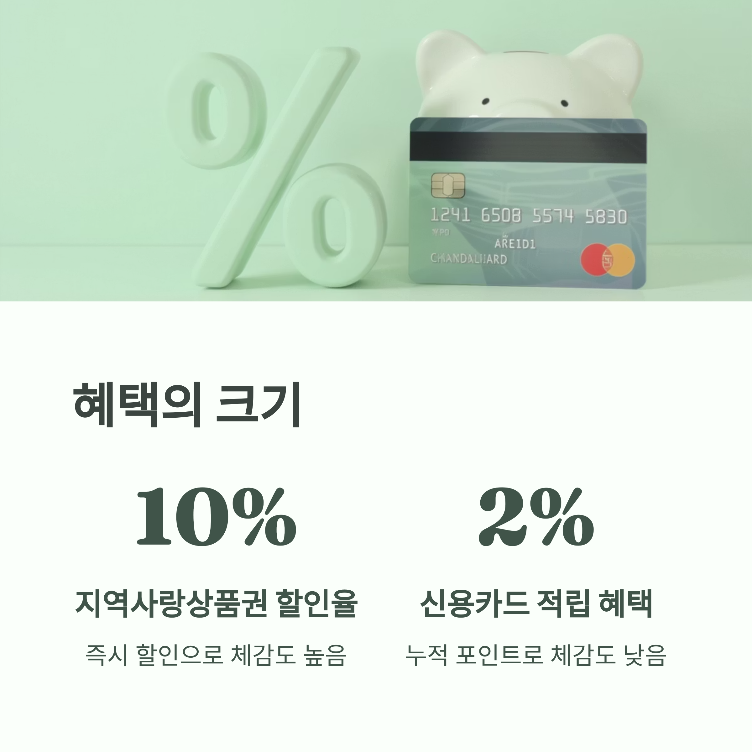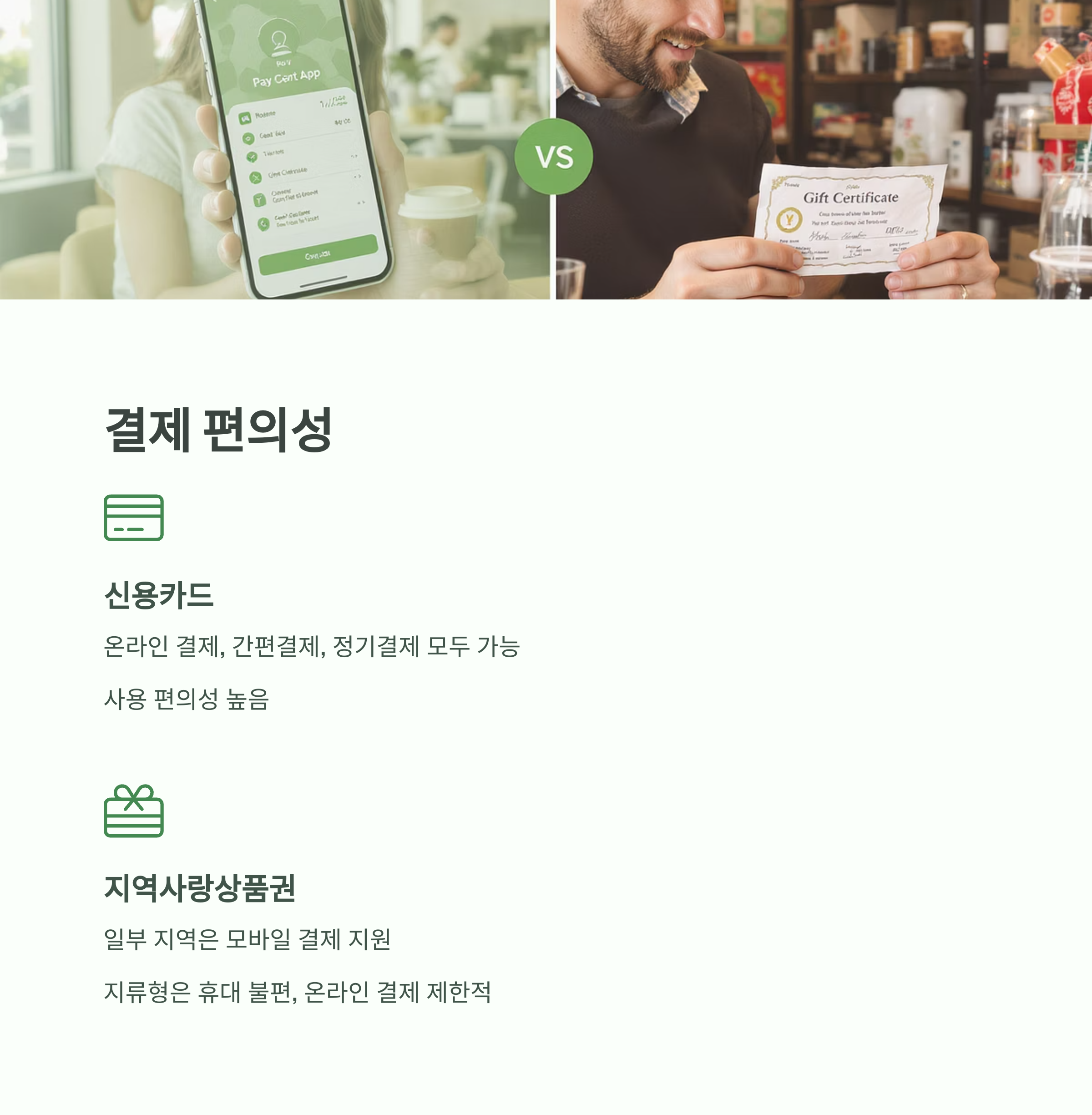 사용처 비교: 범용성은 신용카드, 지역성은 상품권