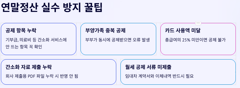 - ✅ 부양가족 중복 공제: 부부가 동시에 공제받으면 오류 발생 가능